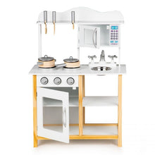 Šī koka bērnu virtuvīte ir lieliska dāvana bērniem no 3 gadu vecuma. Izgatavota no augstas kvalitātes koka, tā ir stabila un bez asām malām, nodrošinot drošu un radošu spēli. Tā ietver kustīgus elementus, piemēram, cepeškrāsni, mikroviļņu krāsni un krānu, kā arī septiņus papildu virtuves piederumus, tostarp katlus un gatavošanas rīkus. Šī rotaļlieta attīsta bērnu iztēli un roku veiklību, un tās estētiskais dizains padara to piemērotu gan bērnu istabai, gan viesistabai.