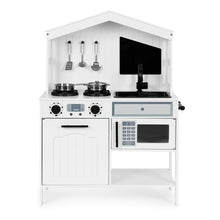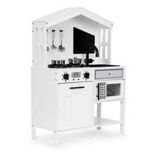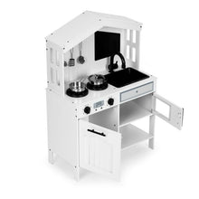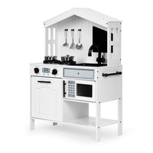 Komplektā ir iekļauti pieci metāla virtuves piederumi: katls, panna ar vāku, lāpstiņa, sietiņš un makaronu karote. Rotējošās pogas ļauj simulēt plīts un cepeškrāsns darbību, veicinot radošu rotaļu un atdarināšanas mācīšanos.
