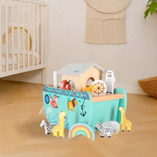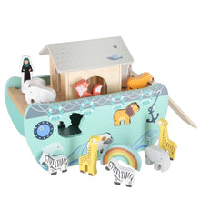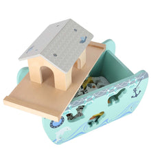 Komplektā ir rūpīgi izgatavotas koka dzīvnieku figūriņas – katra pa diviem eksemplāriem, kas simbolizē klasiskos dzīvnieku pārus no Noasa šķirsta stāsta. Tāpat komplektā ir Noasa un viņa sievas figūras, kas ļauj bērniem atveidot sižetus un labāk izprast, kā šķirsts palīdzēja glābt dzīvniekus.